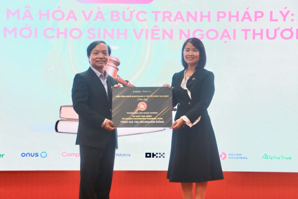 Trong khuôn khổ chương trình, Viện ABAII đã trao tặng 50 suất học bổng MasterTeck, với tổng trị giá 100 triệu đồng cho sinh viên Trường Đại học Ngoại thương. MasterTeck là nền tảng học trực tuyến mở về blockchain và AI hàng đầu Việt Nam, được thiết kế giúp học viên tiếp cận các kiến thức về blockchain, trí tuệ nhân tạo và kỹ năng nghề nghiệp nhanh nhất, hiệu quả nhất, được giảng dạy bởi hơn 120 chuyên gia trong nước và quốc tế.