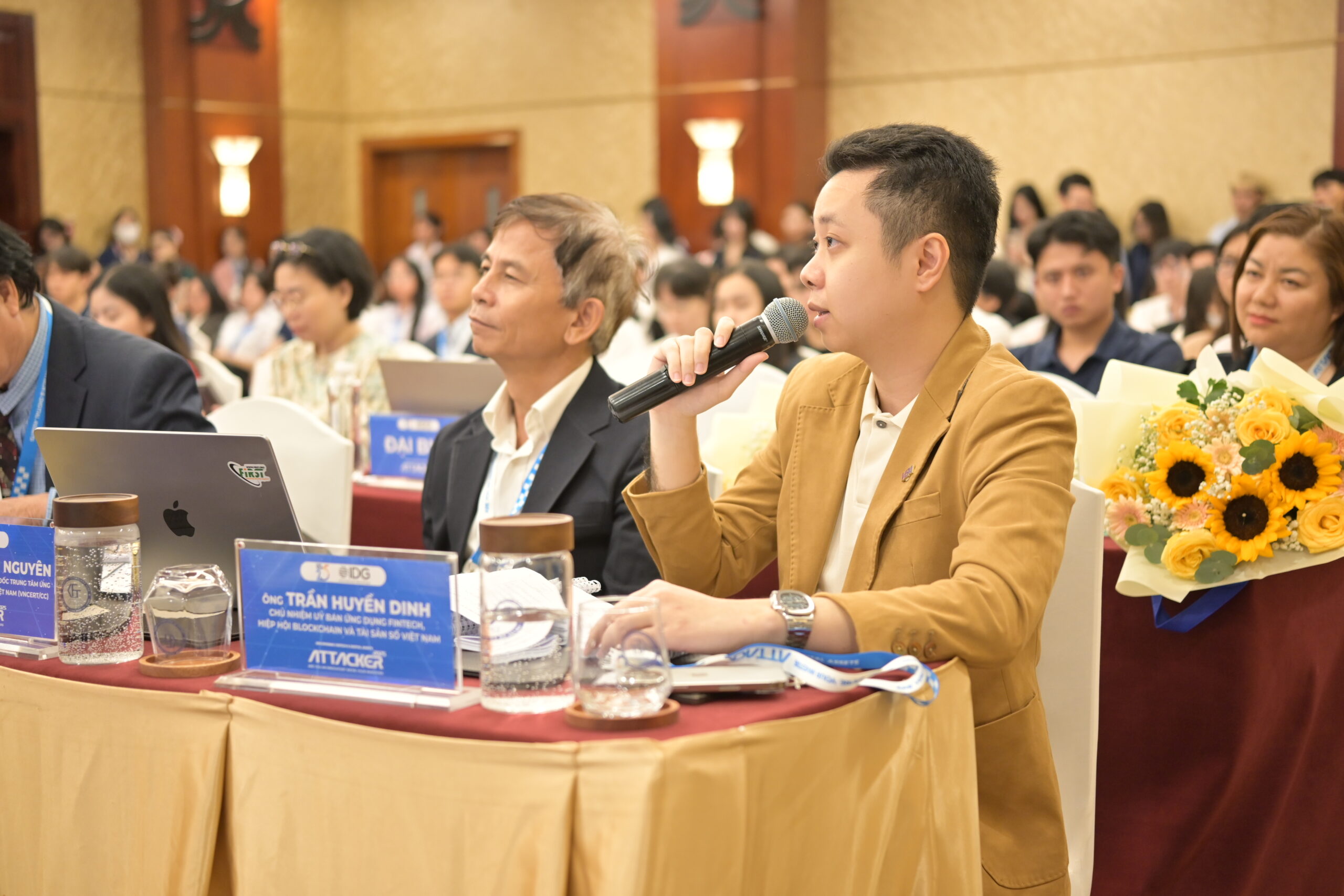 Ông Trần Huyền Dinh, Chủ nhiệm Ủy ban Ứng dụng Fintech VBA, thành viên Hội đồng Giám khảo đưa ra nhận xét về phần thi của các đội tại Chung kết ATTACKER 2025.
